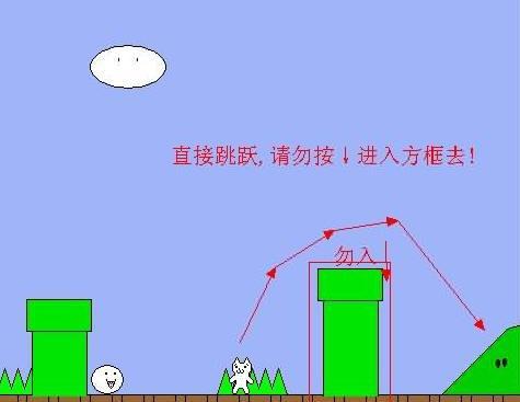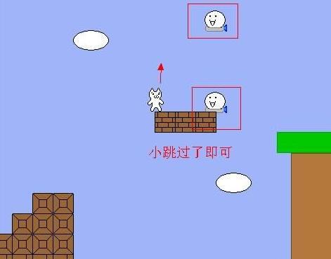 正确的方法应该是先跳上出生地上方的石头,然后再跳过对面,在怪物下来前,将上方的红砖全部顶碎,然后等怪物下来好,把握时机从怪物头上跳过去。