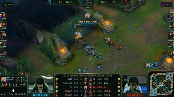 10分钟,宁王来上Gank,越塔配合TheShy将Impact击杀。11分钟,双方中下野在野区对决,奥拉夫和奇亚娜互换。17分钟,IG五人抱团来中路,在击杀了TL上辅后,果断将TL中路一塔推毁,后续Jensen想杀TheShy反被击杀。