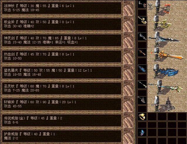 《lp仿传奇单机版》BOSS所暴装备图解大全